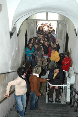 Siamo ospiti d'onore....non è possibile!!!! E noi che ridevamo di Roberto che saliva come un papa sul montacarichi della carrozzina, rallentando tutti ma troppo felice di essere lui "la diva" del momento....